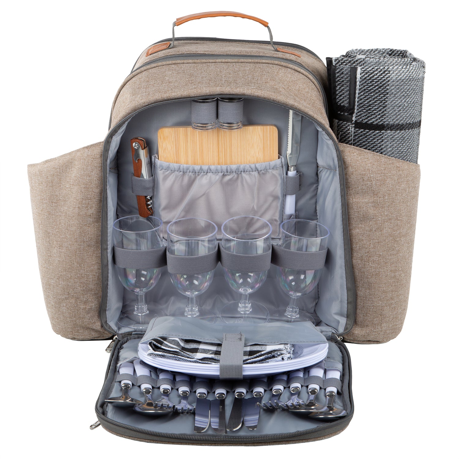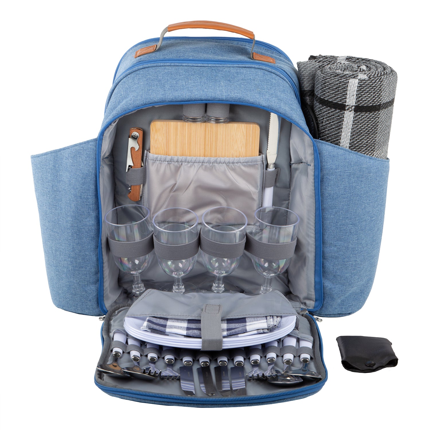 Contemporary Picnic Backpack 4 Person with Picnic Blanket