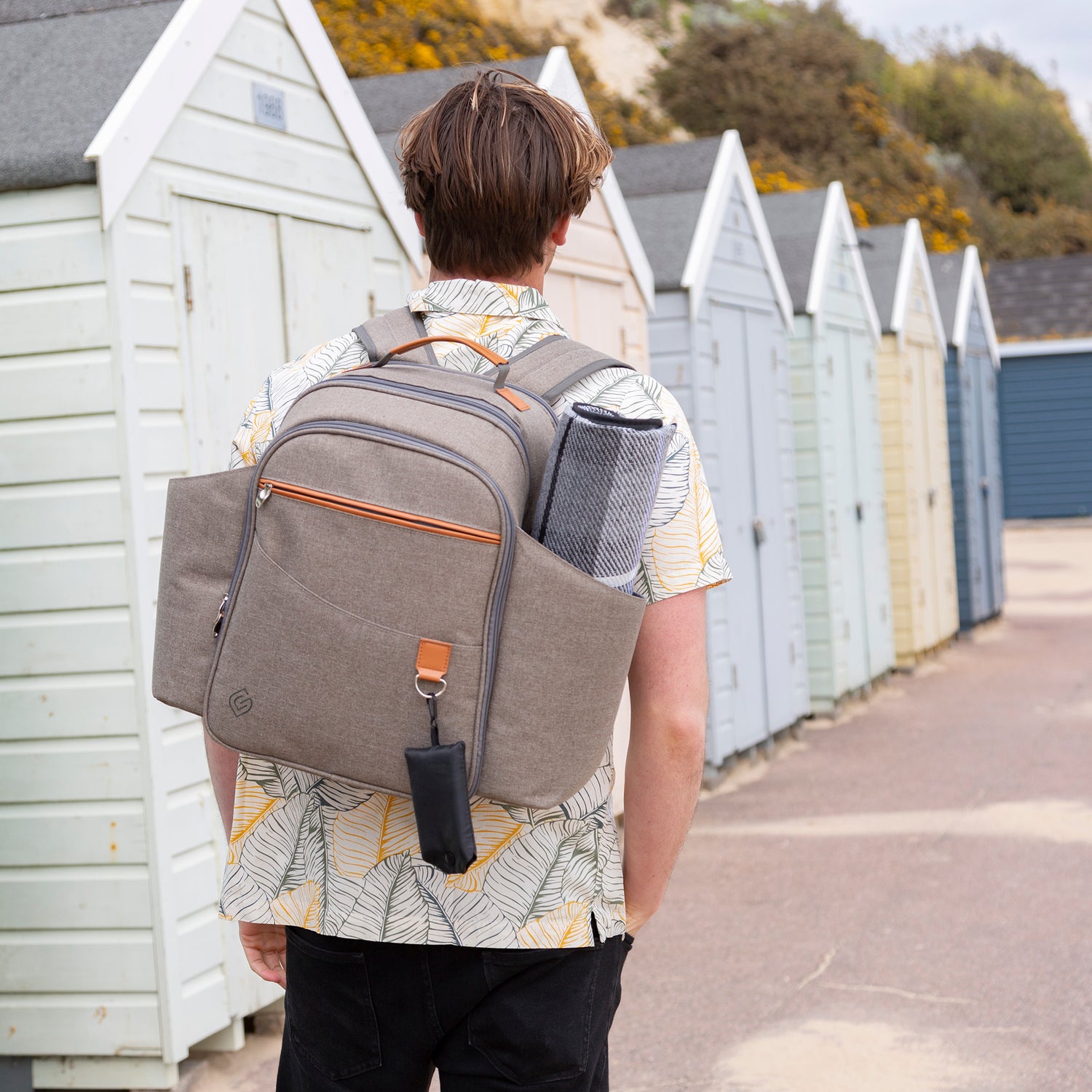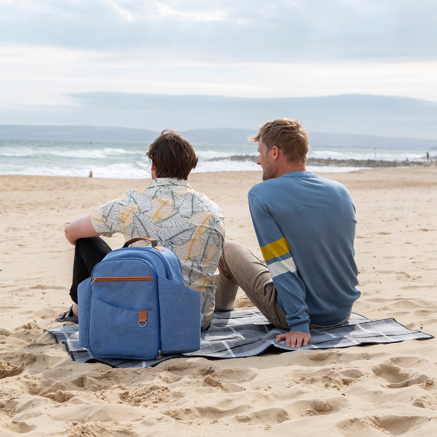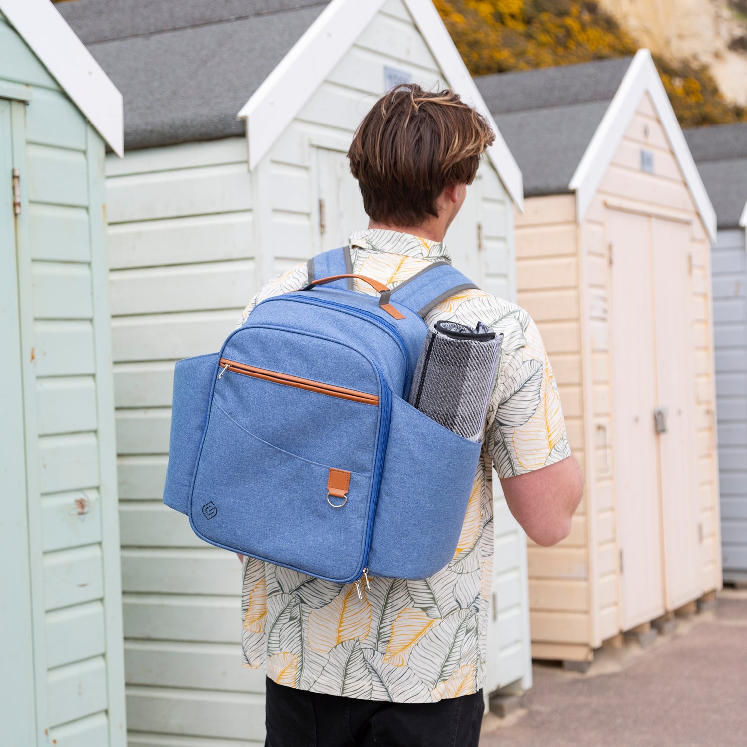 The Contemporary Picnic Backpack for four people is a stylish solution for feeding friends and family on a fun picnic day out. The Picnic Backpack is available in either stone grey or denim blue and is finished off with an aesthetically pleasing faux leather handle and piping.