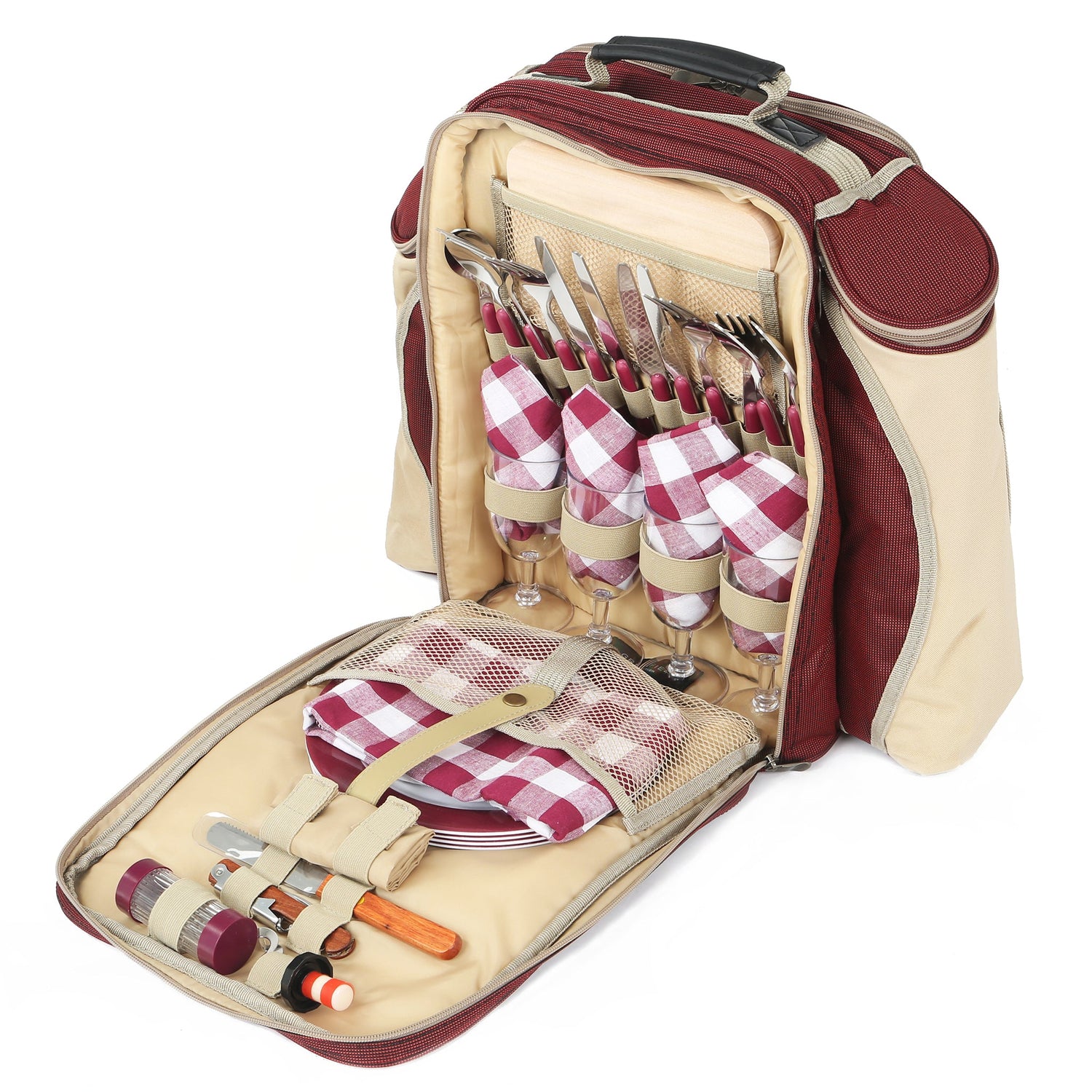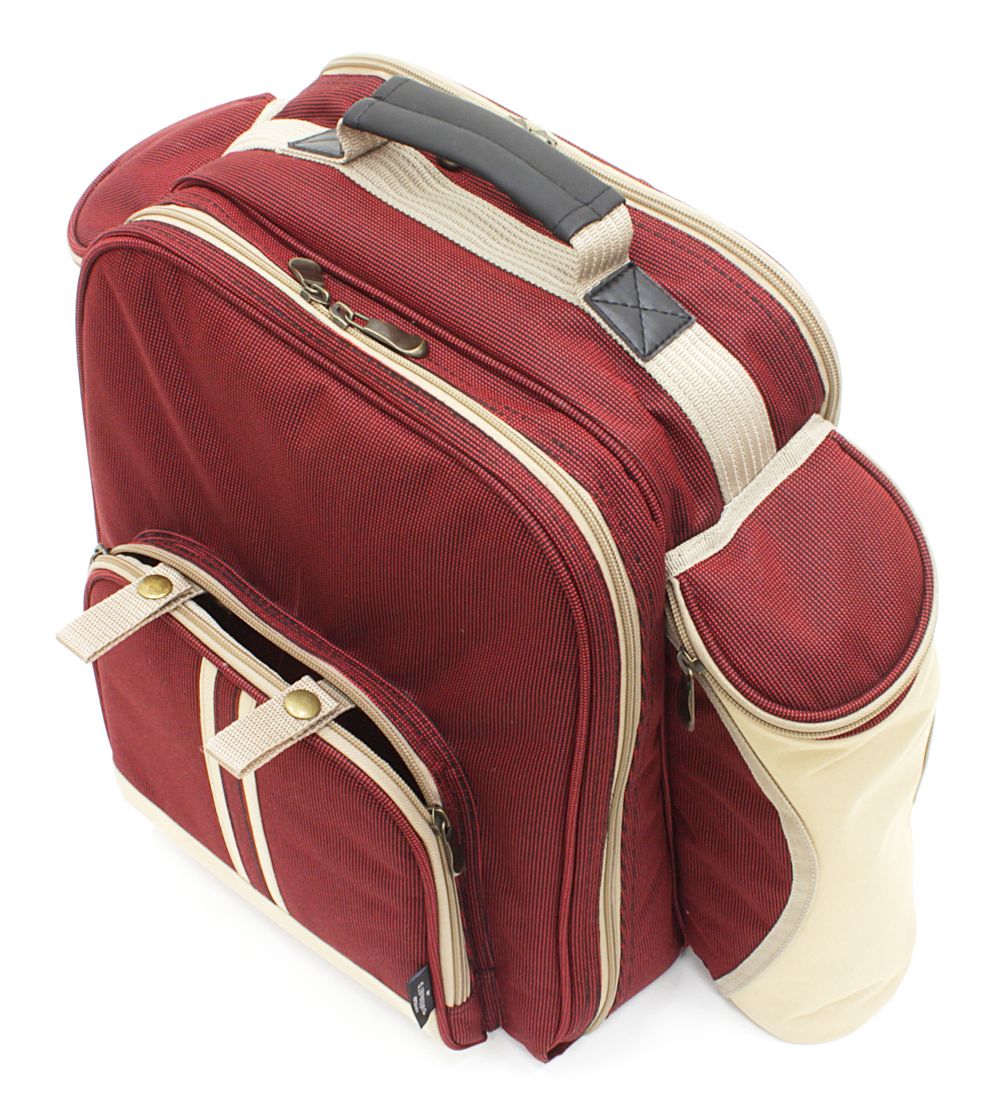 Deluxe Picnic Backpack Hamper for Four People - Mulberry Red is backordered and will ship as soon as it is back in stock.