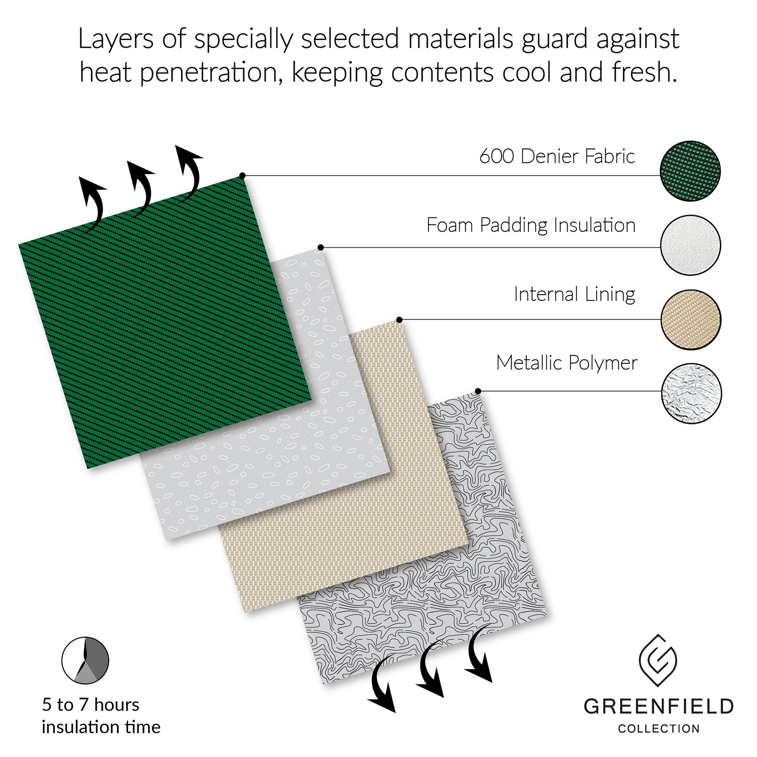 Acting as a cool bag, the rear compartment and integrated bottle holders are insulated using four layers of premium materials to guard against heat penetration, ensuring the contents can be kept cool or warm for 5-7 hours. Cooling time can be increased if ice packs are used in conjunction with the picnic backpack.