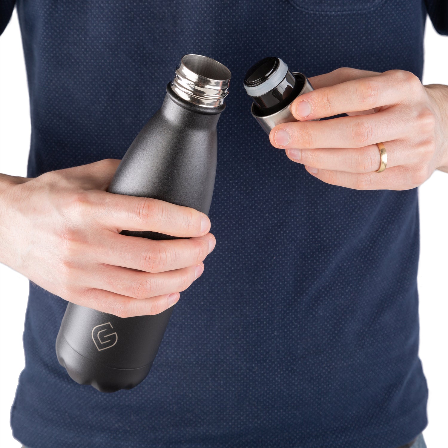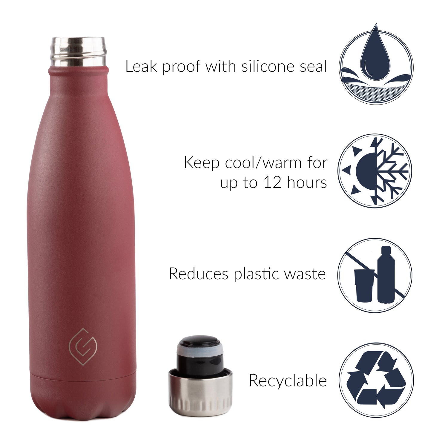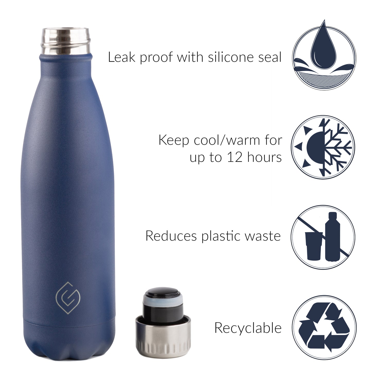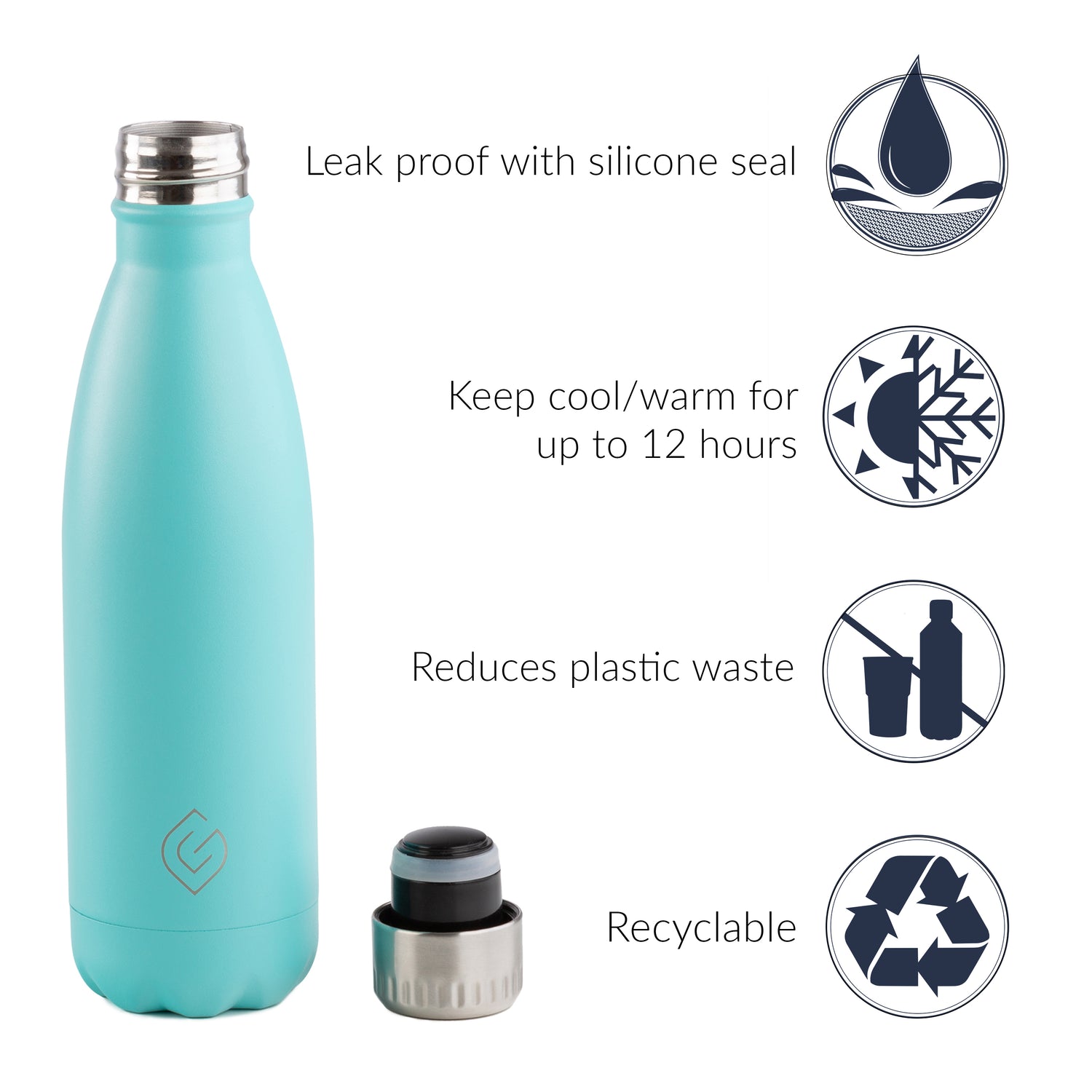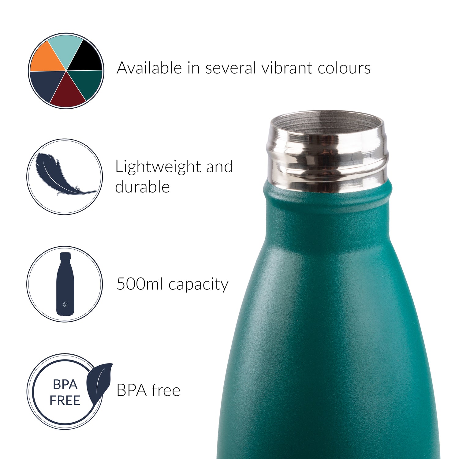 Our Coast 500ml Insulated Bottle is perfect for keeping drinks hot or cold for up to 12 hours whilst on your day out. Its double-wall vacuum technology works to insulate your drink and prevent condensation, whilst the tight silicone seal makes the bottle leak-proof. The powder-coated exterior results in a hard-wearing finish, protecting your bottle on the go. Plus, the stainless-steel internal finish, of both our bottles and tumblers, makes cleaning them easy.