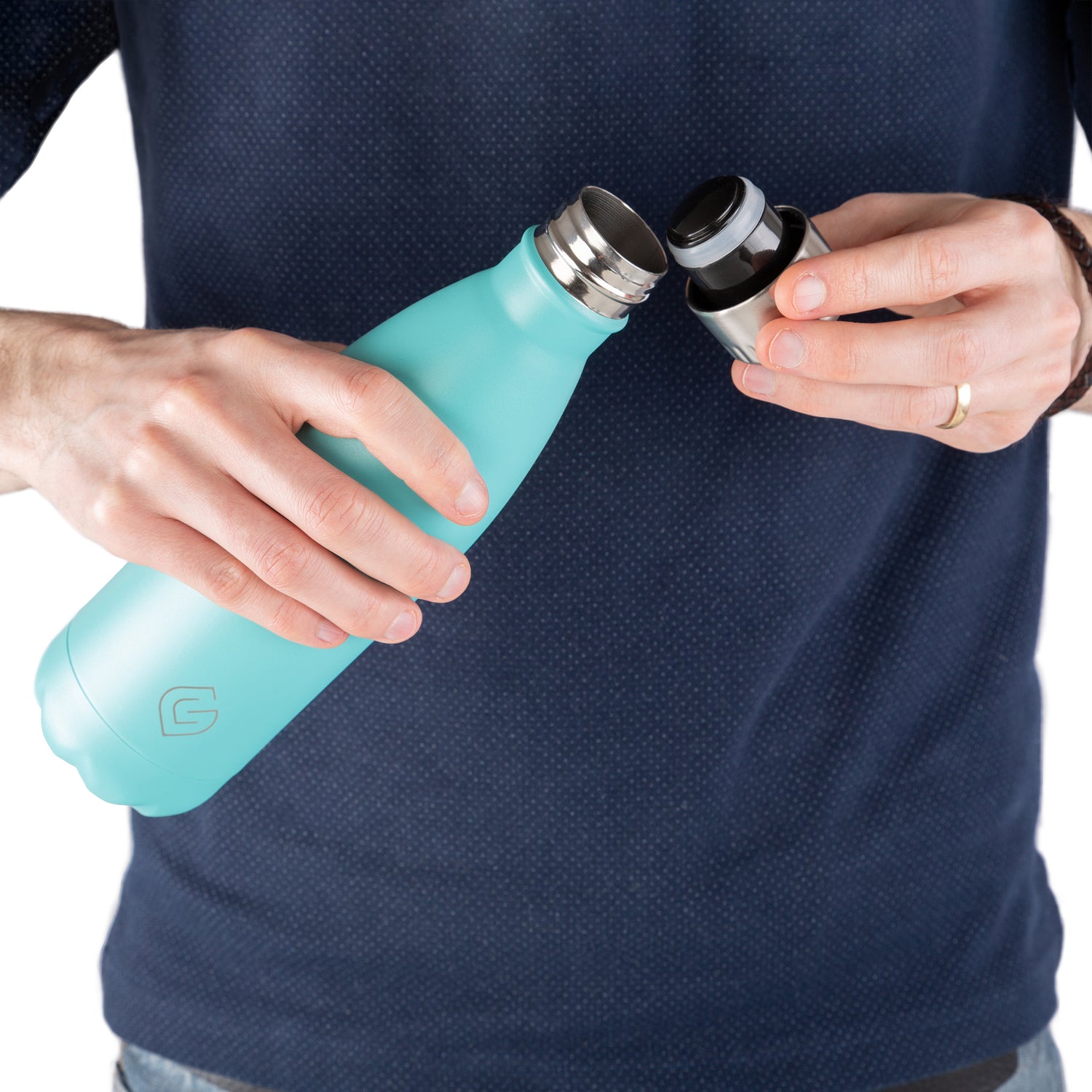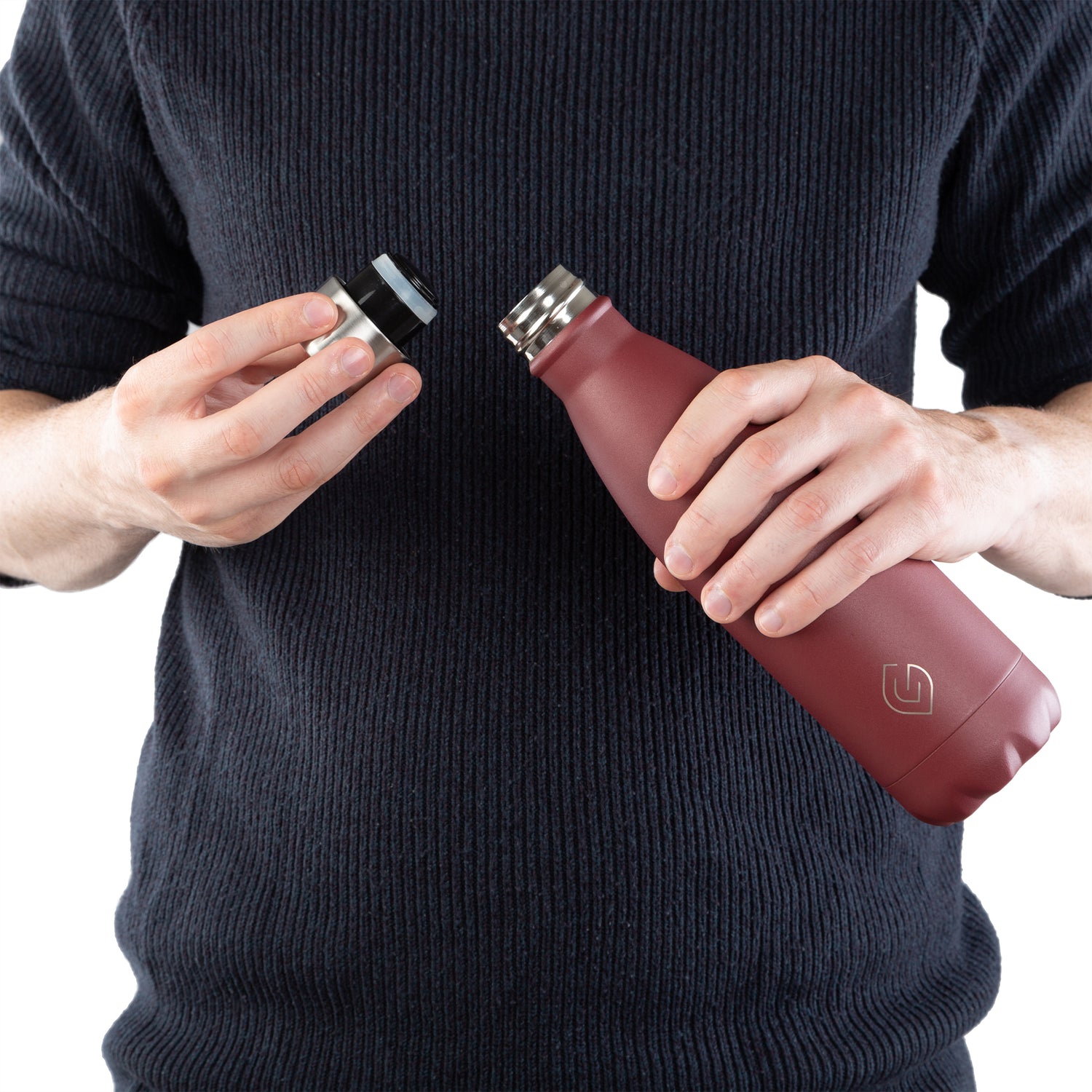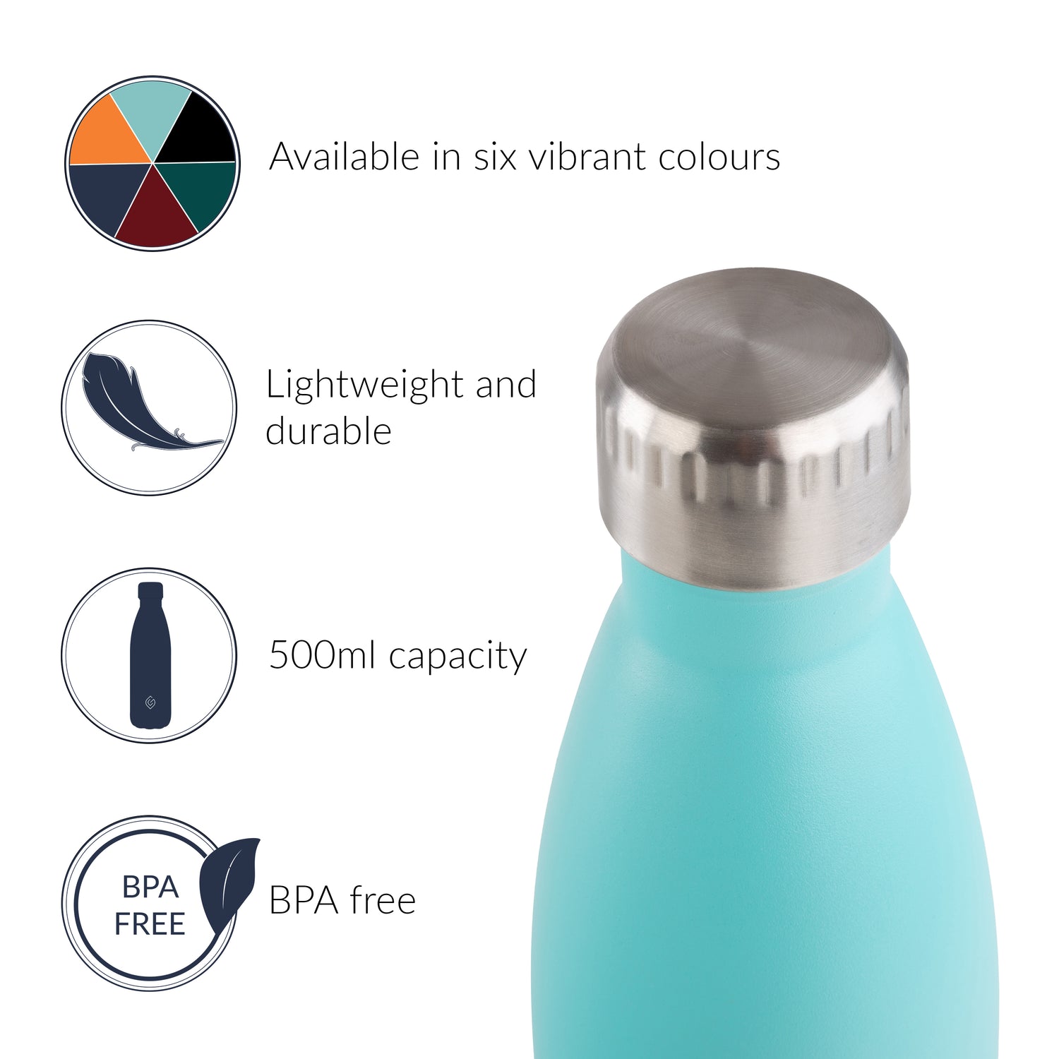 This bottle comes in a range of six colours – designed to match both our Coast and Classic Collections: aqua, navy, orange, mulberry red, forest green, and black.