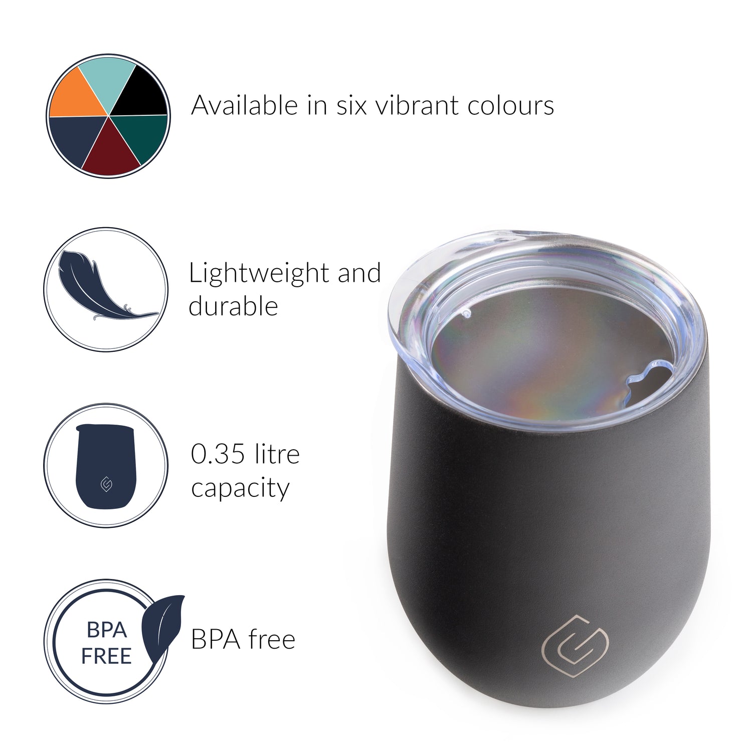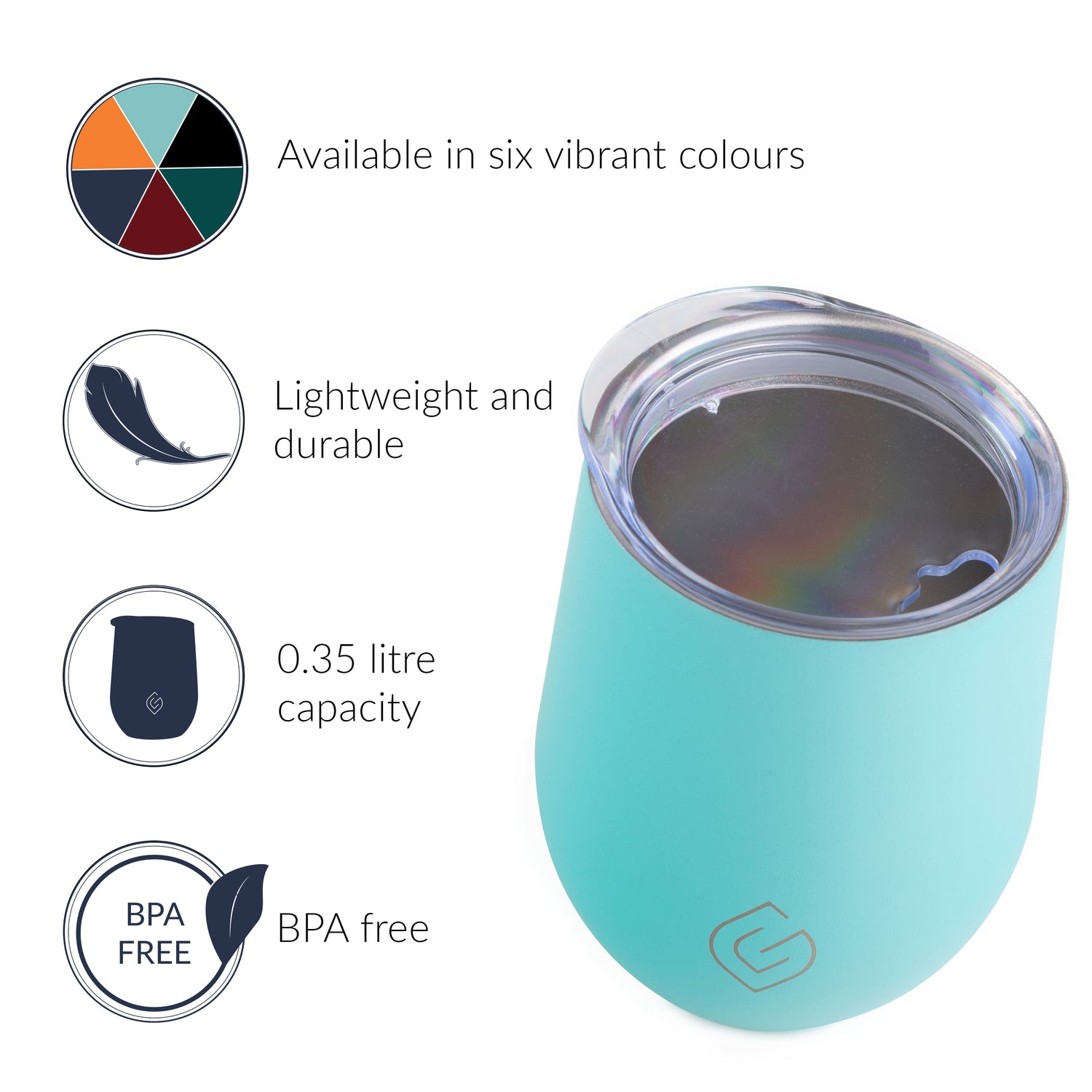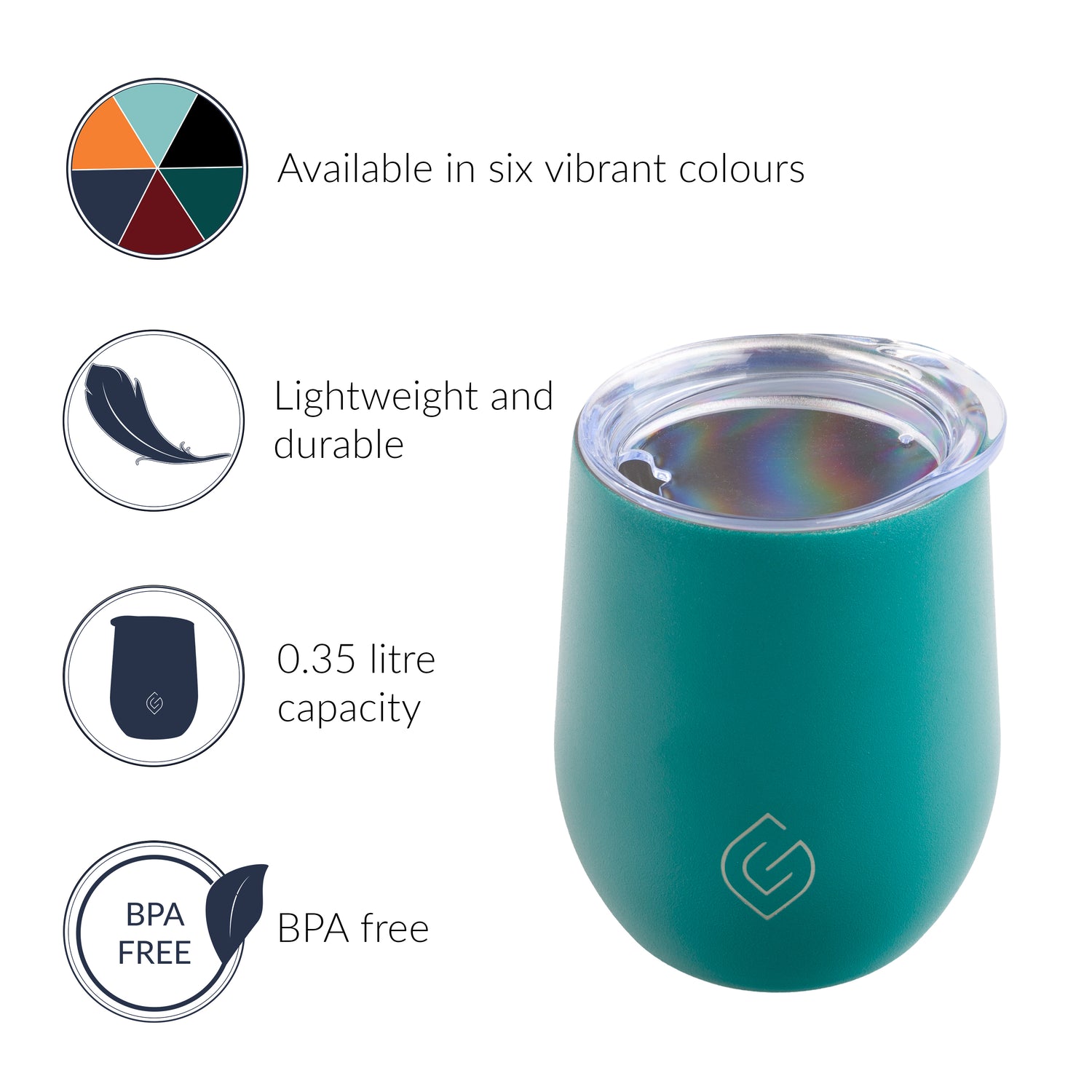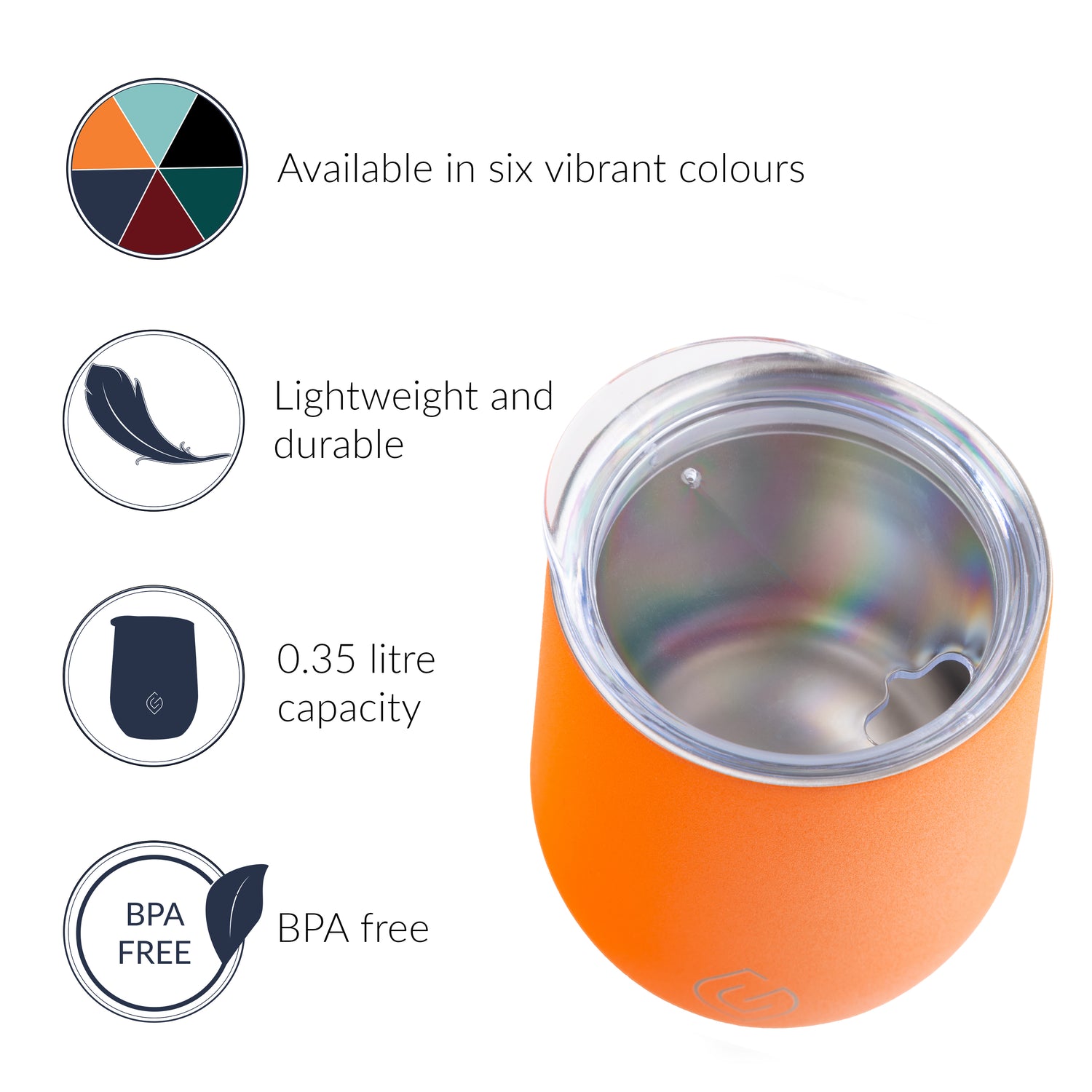 This Tumbler comes in a range of six colours – designed to match both our Coast and Classic Collections: Aqua, navy blue, orange, mulberry red, forest green, and black.