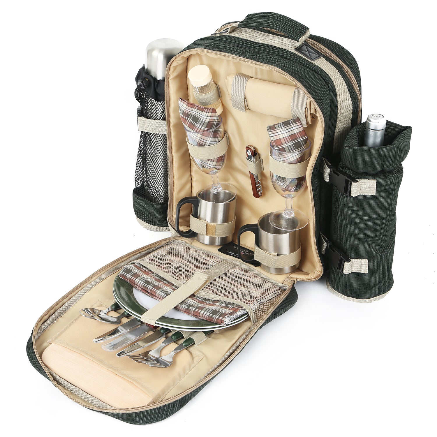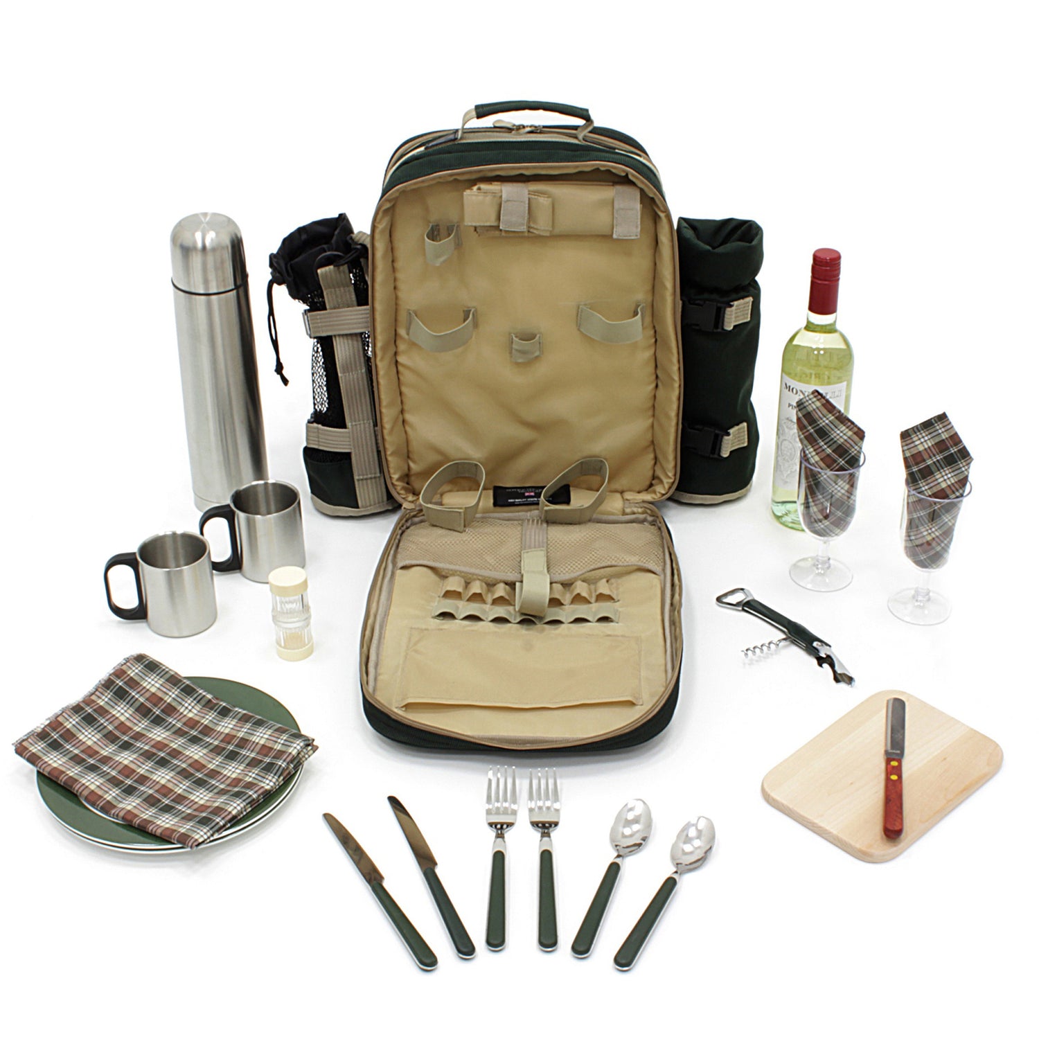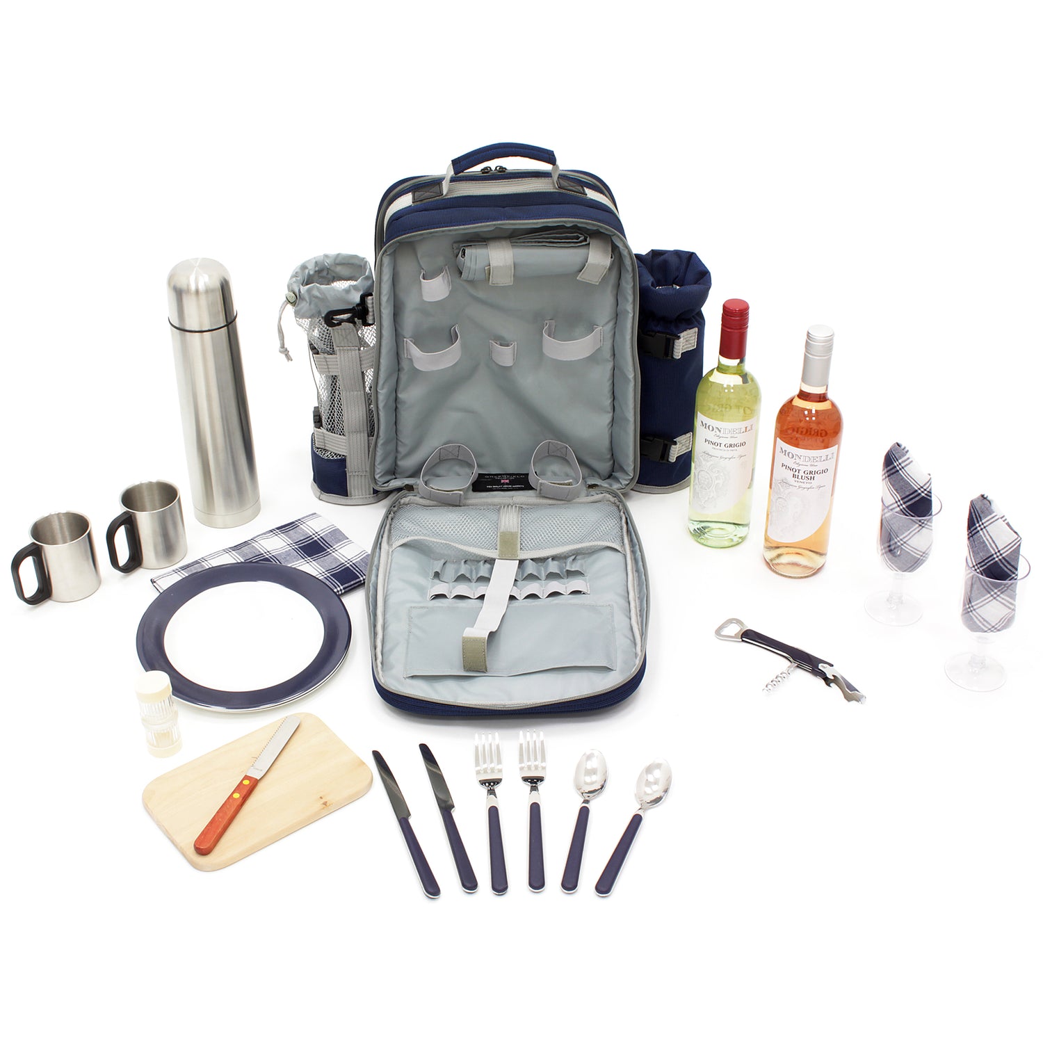 This super deluxe picnic backpack hamper has all of the essential accessories for a fantastic picnic for up to two people.