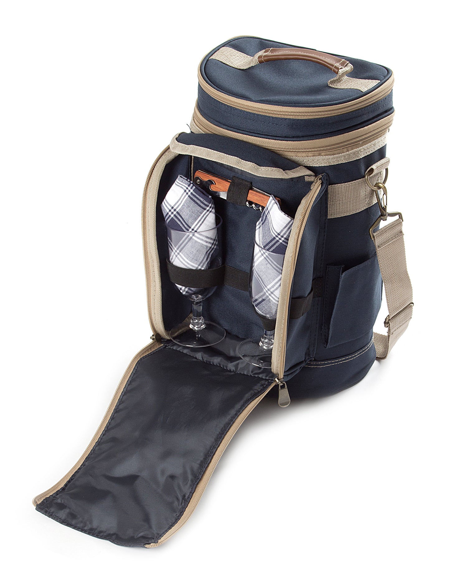 There is a small compartment on the front of the bag which contains the wine glasses, waiter’s friend and napkins which are all secured with elasticated straps.