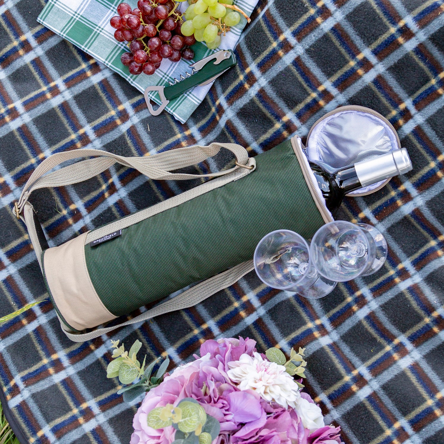 This wine cooler bag can accommodate a bottle of wine or soft drink