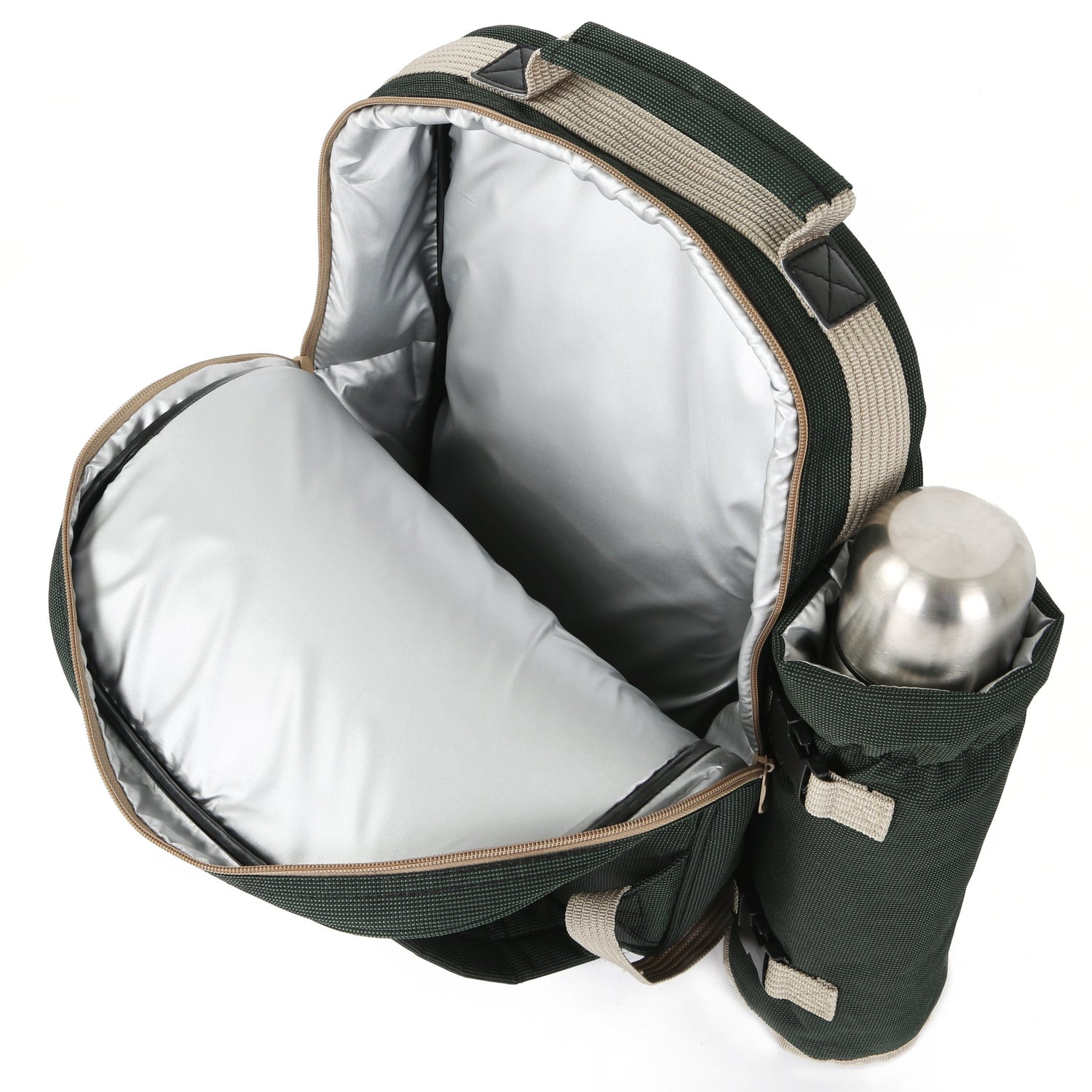 The spacious integrated cool bag compartment within the picnic backpack is large enough to accommodate picnic food, containers and beverages, ensuring your feast arrives as fresh as it was when it left the kitchen.