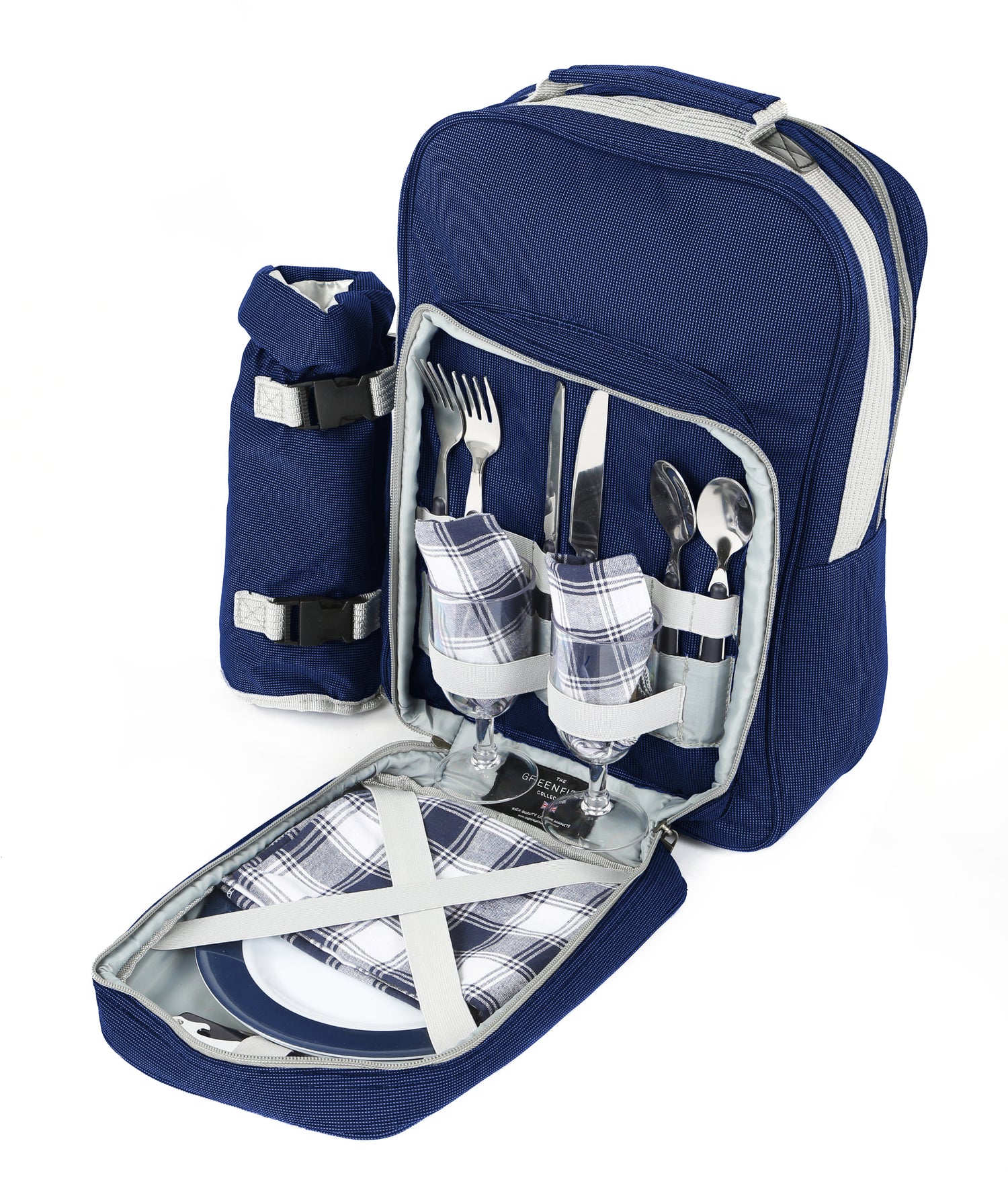 Inspired by the great outdoors, the picnic rucksack has been designed to be both stylish and practical. Made from high quality 600D Polyester, the picnic backpack is both durable and lightweight an features sturdy, easy to carry padded adjustable shoulder straps for comfort.
